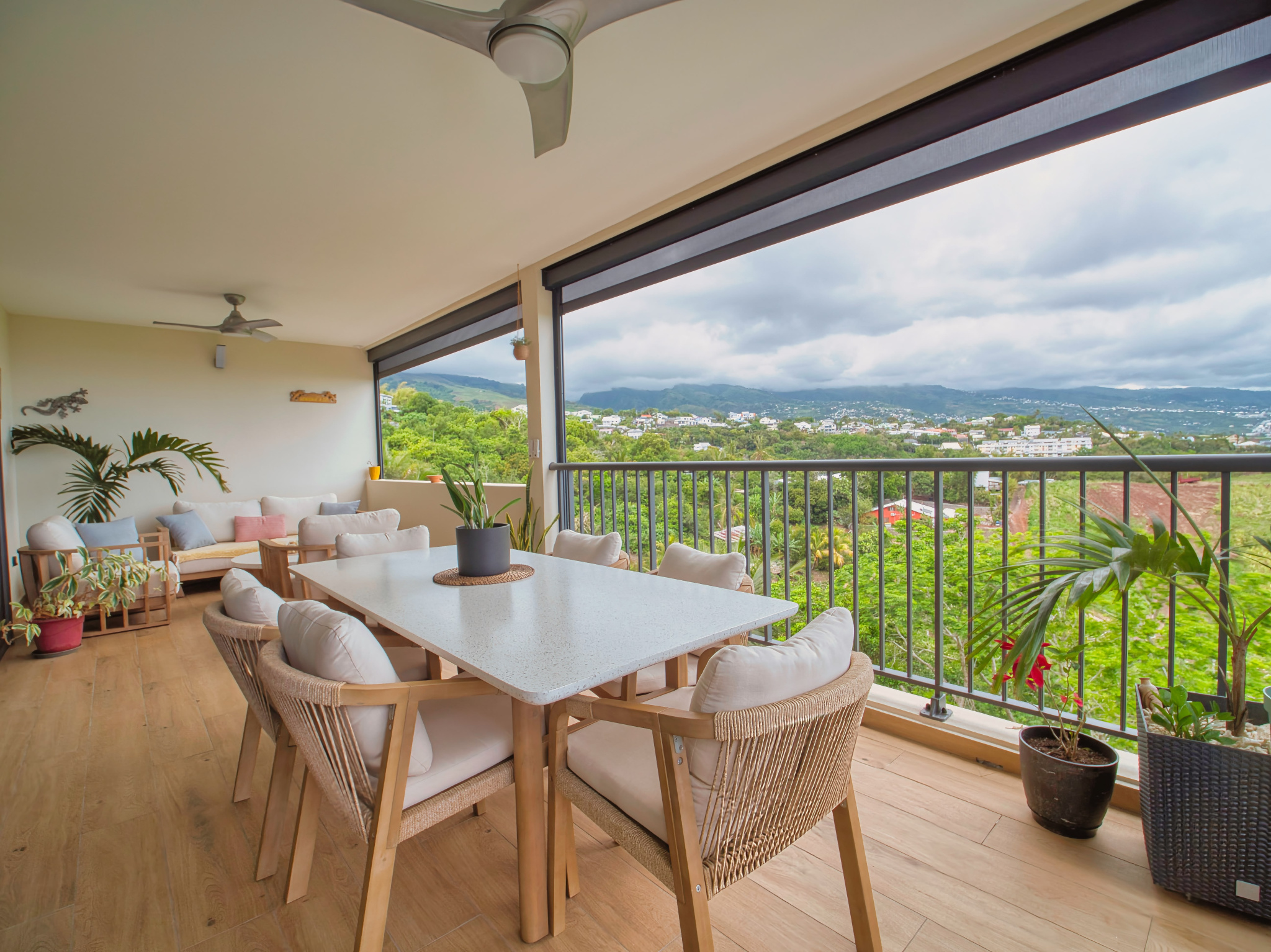 Une terrasse de plus de 20 m² offrant une vue dégagée mer et montagne