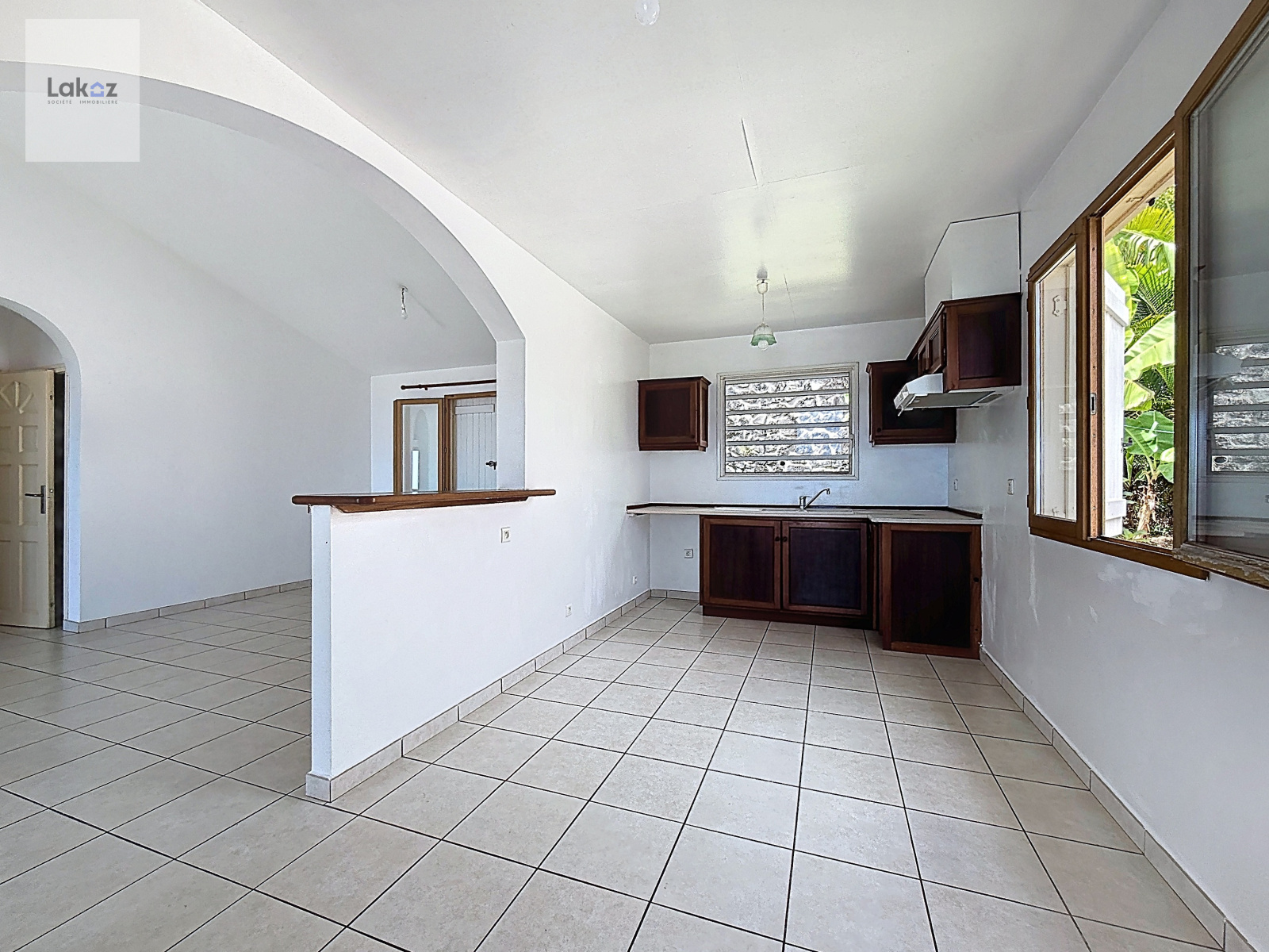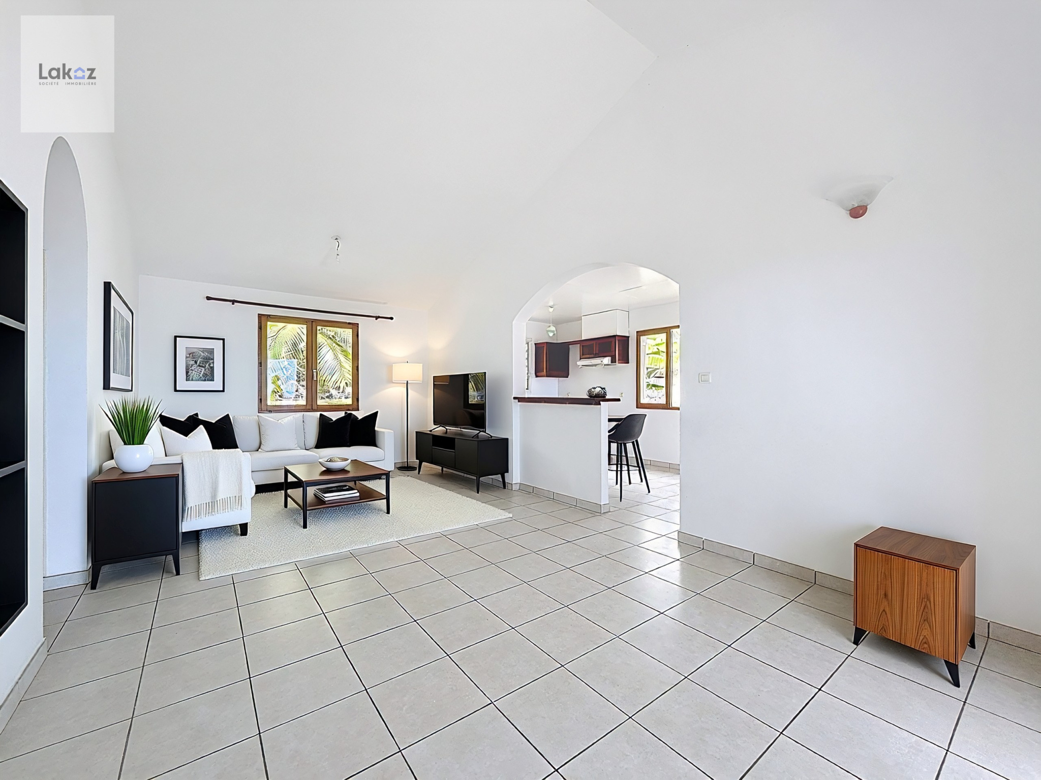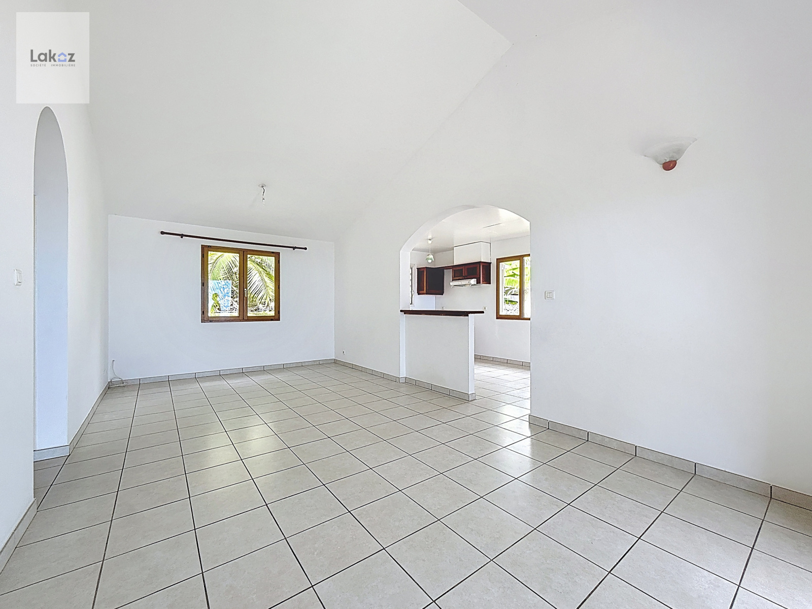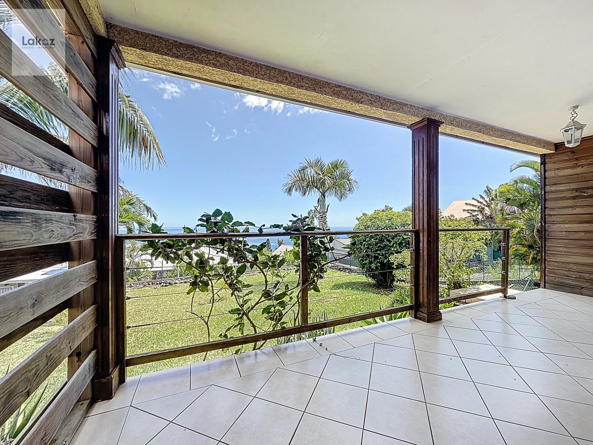 Le séjour lumineux de 24 m² s'ouvre en continuité sur une cuisine américaine aménagée, formant un espace de vie convivial de plus de 34 m² donnant directement sur la varangue couverte de 16 m² face à l'océan — véritable salon extérieur idéal pour les petits-déjeuners et les soirées coucher de soleil.