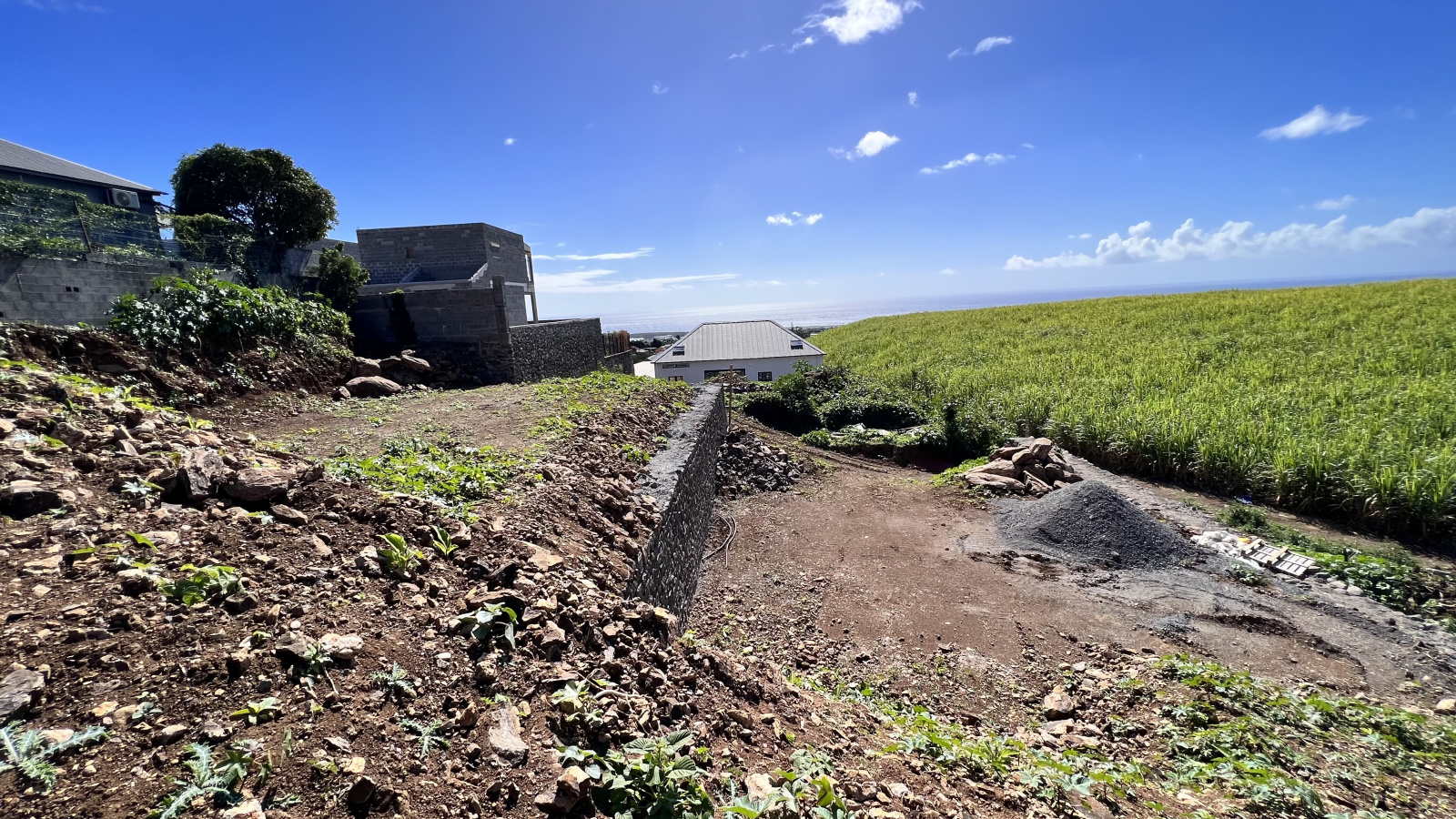 Profitez d’une vue dégagée sur la mer et les montagnes, dans un environnement résidentiel paisible. Les murs de soutènement sont déjà construits, ce qui représente un gain de temps et de budget pour votre projet.
