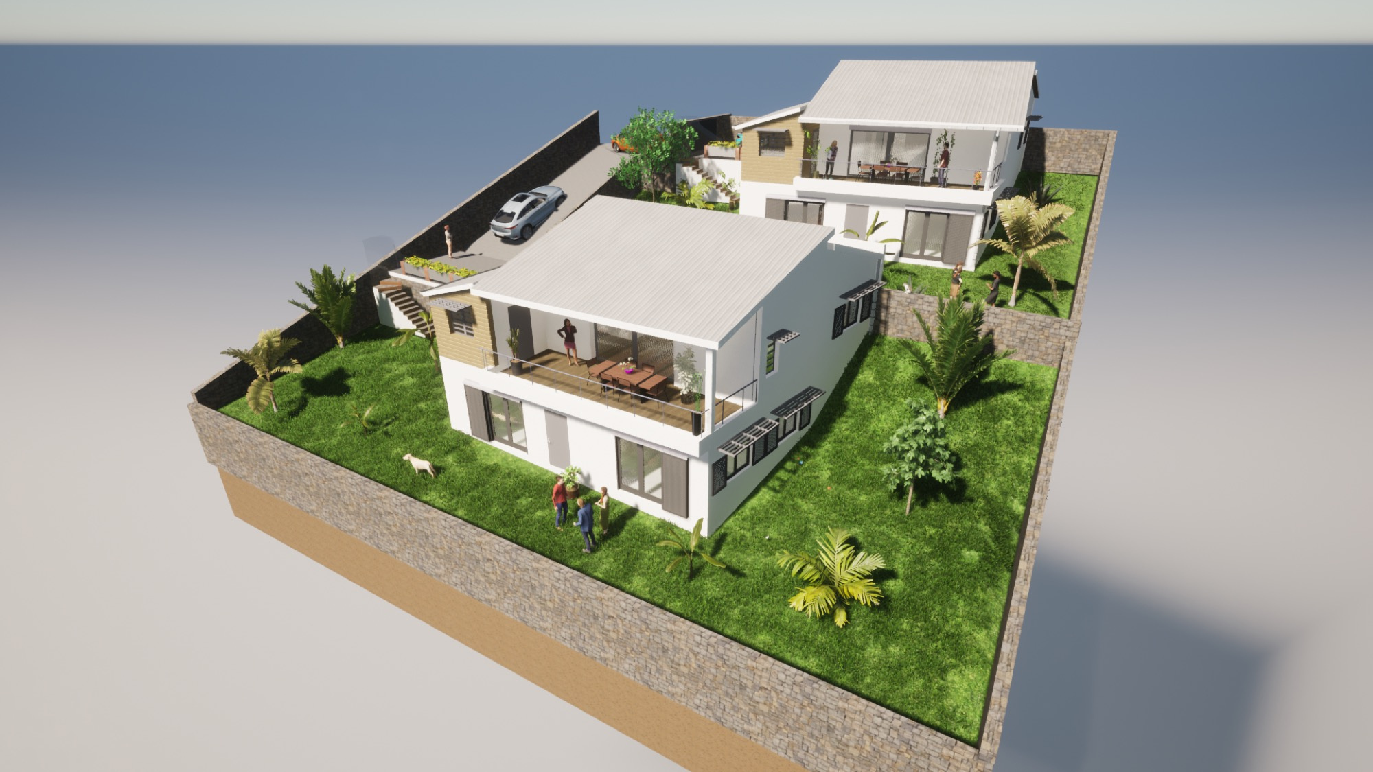 Équipements : murs de soutènement réalisés, réseaux à proximité